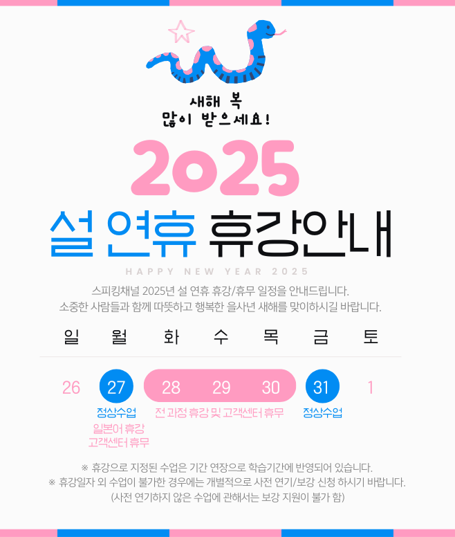 2025년 설연휴 휴강 및 휴무안내