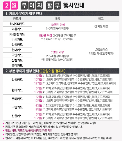 2015년 2월 무이자 할부 행사안내