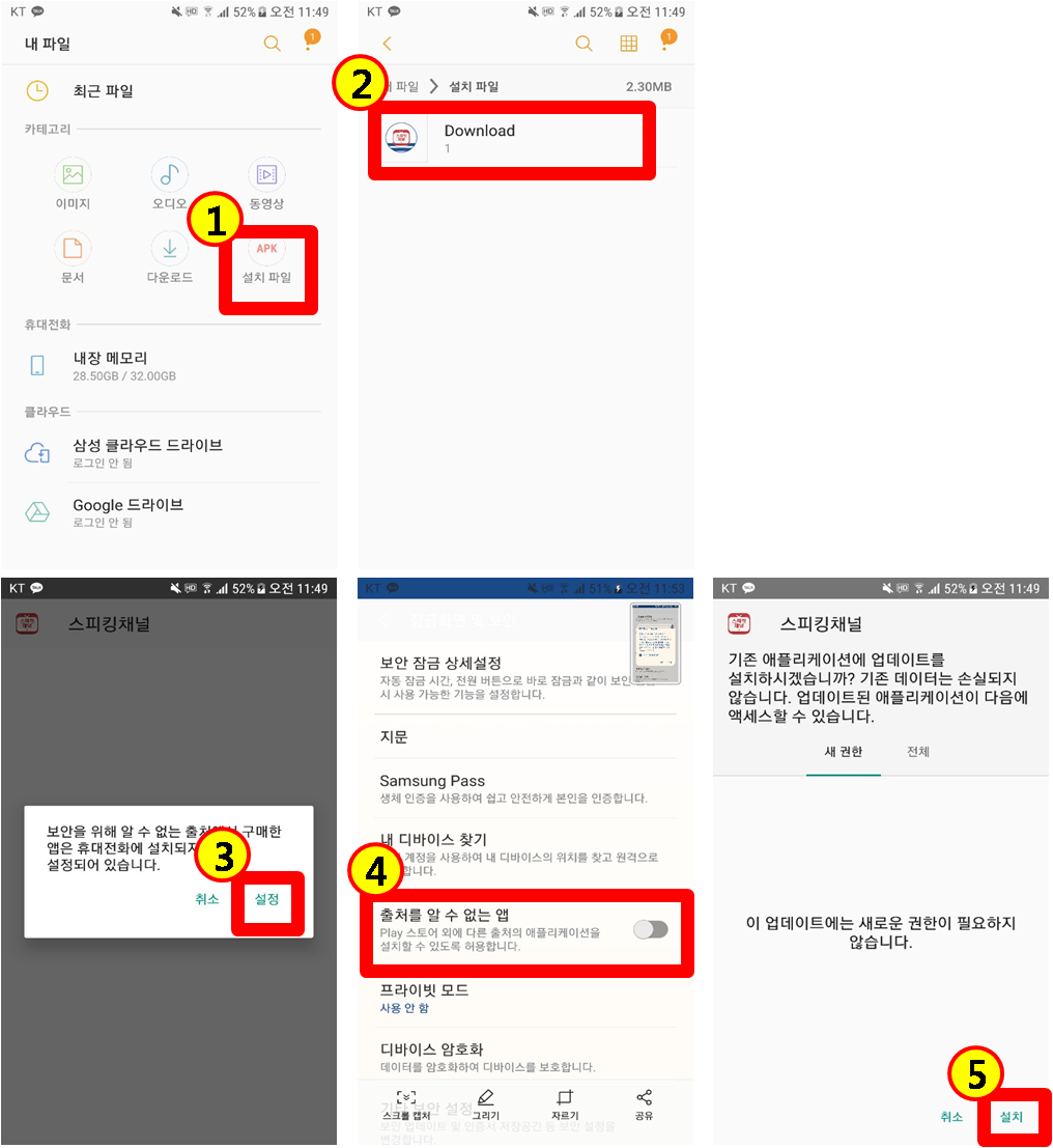 1. "스피킹채널 apk파일"을 모바일에 저장 및 설치